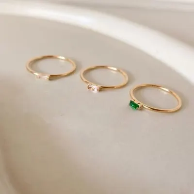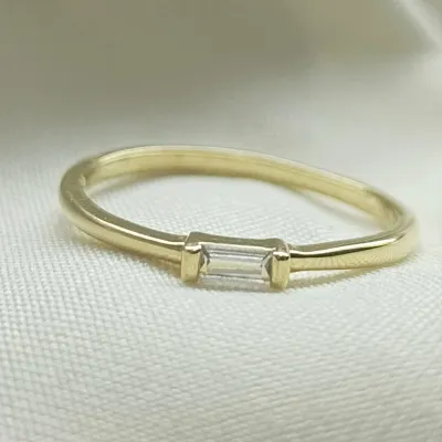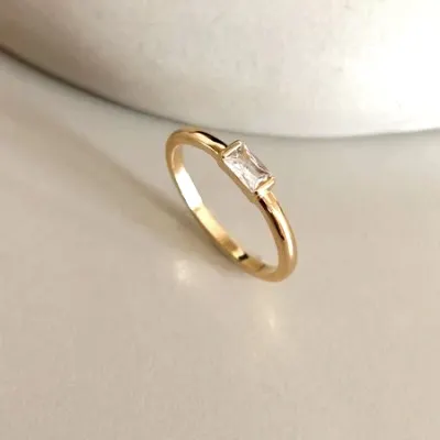 ANEL BANHADO A OURO ZIRCÔNIA BAQUETE 5MM
